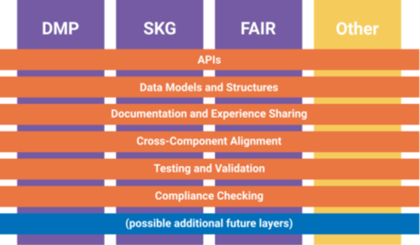 A framework that helps research tools, like DMPs platforms, SKGs, and FAIR assessment tools, communicate and work together. It defines how these systems connect, what kind of information they exchange, and where standardisation helps ensure they speak the same language.